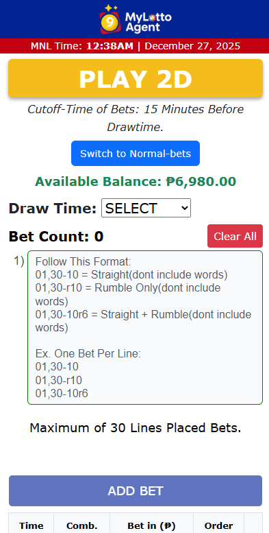 Sa MyLottoAgent Numbers Game App, may mas pinahusay na agent commission na nagbibigay ng mas malaking earnings, mas kontroladong sistema, at mas maaasahang kita para sa aming mga ahente.